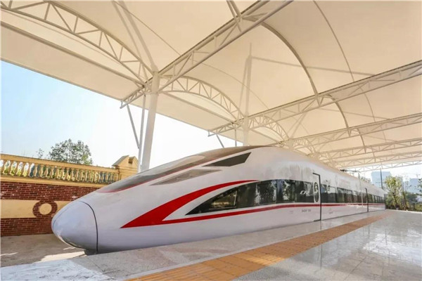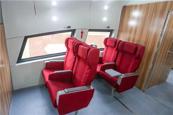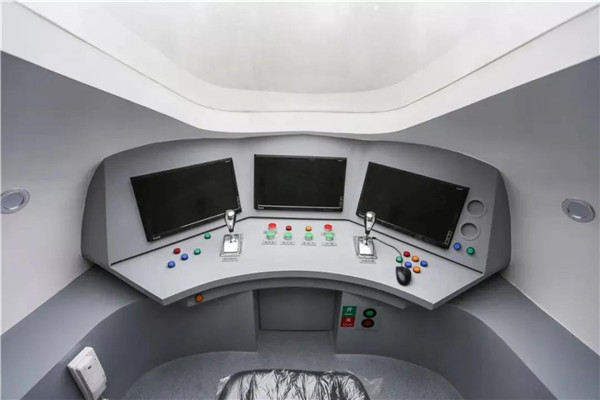 動(dòng)車車頭按復(fù)興號(hào)車頭1:1制作,復(fù)興號(hào)外觀一致,內(nèi)部有衛(wèi)生間、行李架、洗漱間、消防器材區(qū)域、乘務(wù)員控制室、一等座旅客區(qū)域、二等座旅客區(qū)域、餐車吧臺(tái)、旅客屏蔽門。
