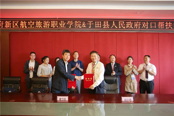 于田縣戴雪松副縣長談到,“要想地區(qū)富,必須先修路”,民航局正在加大力度在今年12月份完建一座屬于于田縣的新機(jī)場;于田縣雖貧,卻物產(chǎn)豐饒,如:大棗、杏子、葡萄、玫瑰等,加工原生態(tài)綠色的物產(chǎn),遠(yuǎn)銷內(nèi)地拉動經(jīng)濟(jì)發(fā)展是一條精準(zhǔn)脫貧的有效途徑。最后,戴縣長表示感謝西南管理局和東星航空教育集團(tuán)、天航學(xué)院的支持,于田縣要通過外部幫扶和內(nèi)生動力共同努力,在2020年實(shí)現(xiàn)精準(zhǔn)脫貧目標(biāo)。