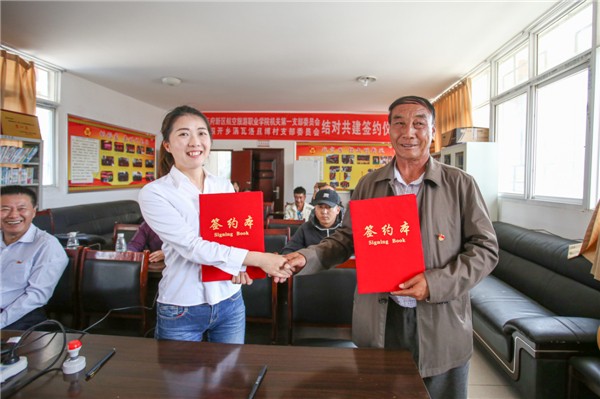 為扎實(shí)、深入推進(jìn)對(duì)口幫扶工作,學(xué)院積極與對(duì)口幫扶貧困村開展城鄉(xiāng)黨建結(jié)對(duì)共建活動(dòng)。中共天府新區(qū)航空旅游職業(yè)學(xué)院機(jī)關(guān)第一支部委員會(huì)書記冷靜與中共四開鄉(xiāng)灑瓦洛且博村支部委員會(huì)書記莫色木支簽定“城鄉(xiāng)黨建結(jié)對(duì)共建”合作協(xié)議,構(gòu)建基層黨組織互幫互助常態(tài)化機(jī)制,推動(dòng)城鄉(xiāng)基層黨組織服務(wù)脫貧攻堅(jiān)、服務(wù)城鄉(xiāng)統(tǒng)籌發(fā)展、服務(wù)經(jīng)濟(jì)社會(huì)發(fā)展。