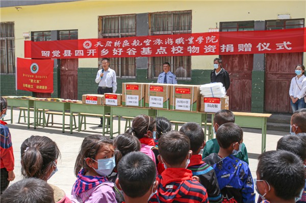天航作為一所民航高等院校,自辦學(xué)以來一直秉持教育初心,時(shí)時(shí)刻刻心系這群大山深處的孩子。新冠疫情暴發(fā)以來,各行各業(yè)均面臨了嚴(yán)重沖擊。山里的學(xué)校如何復(fù)課、如何保障孩子們安全返校成為了當(dāng)?shù)卮逍〉碾y題。我院急學(xué)校之所急,想方設(shè)法通過自行采購(gòu)、引進(jìn)幫扶單位等方式為四開鄉(xiāng)乃拖小學(xué)和好谷基點(diǎn)校捐贈(zèng)防疫物資。
