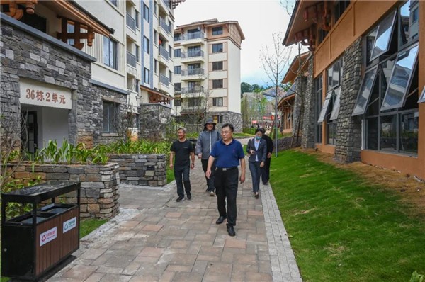 7月21日下午,經(jīng)過一天的車程,踏上泥濘的山路,我院幫扶組順利抵達(dá)四開鄉(xiāng)后,在學(xué)院駐村幫扶干部張倫暢的帶領(lǐng)下,對口幫扶組一行先來到昭覺縣易地扶貧搬遷安置點(diǎn)考察調(diào)研,現(xiàn)代元素與民族風(fēng)貌相結(jié)合的小區(qū),道路、綠化等配套一應(yīng)俱全。隨機(jī)走訪了幾戶貧困戶,他們對于住進(jìn)新房十分開心,紛紛表示自己趕上了好政策,遇上了好時(shí)代。