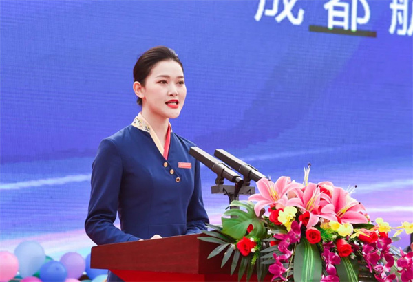優(yōu)秀學(xué)生代表蔣梓桐,現(xiàn)就職于四川航空有限公司擔(dān)任客艙乘務(wù)員一職,代表全體就業(yè)學(xué)生向辛勤給予我們啟迪、授予我們智慧、教育我們正直、賦予我們關(guān)懷的領(lǐng)導(dǎo)老師們,表示最誠摯的感謝!并祝愿天航的明天更加燦爛輝煌!祝愿領(lǐng)導(dǎo)、老師們身體健康,工作順利!祝愿親愛的學(xué)弟學(xué)妹們,學(xué)業(yè)有成!