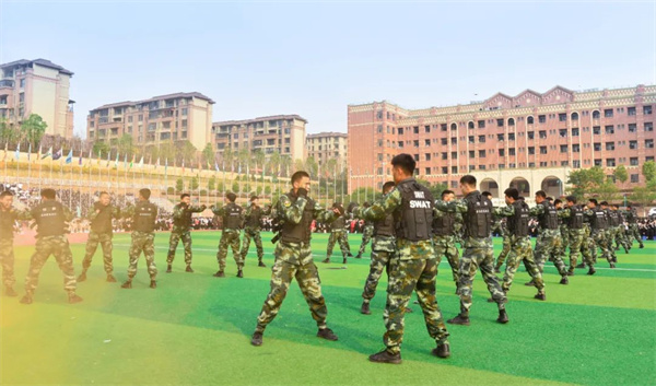 上午9時30分,軍體素質(zhì)匯報表演開始,隊列檢閱、分列式匯報一一展示。14個方隊邁著整齊的步伐、口號嘹亮、英姿颯爽地從主席臺走過,接受在場的領(lǐng)導(dǎo)、嘉賓和軍體素質(zhì)教官們檢閱。