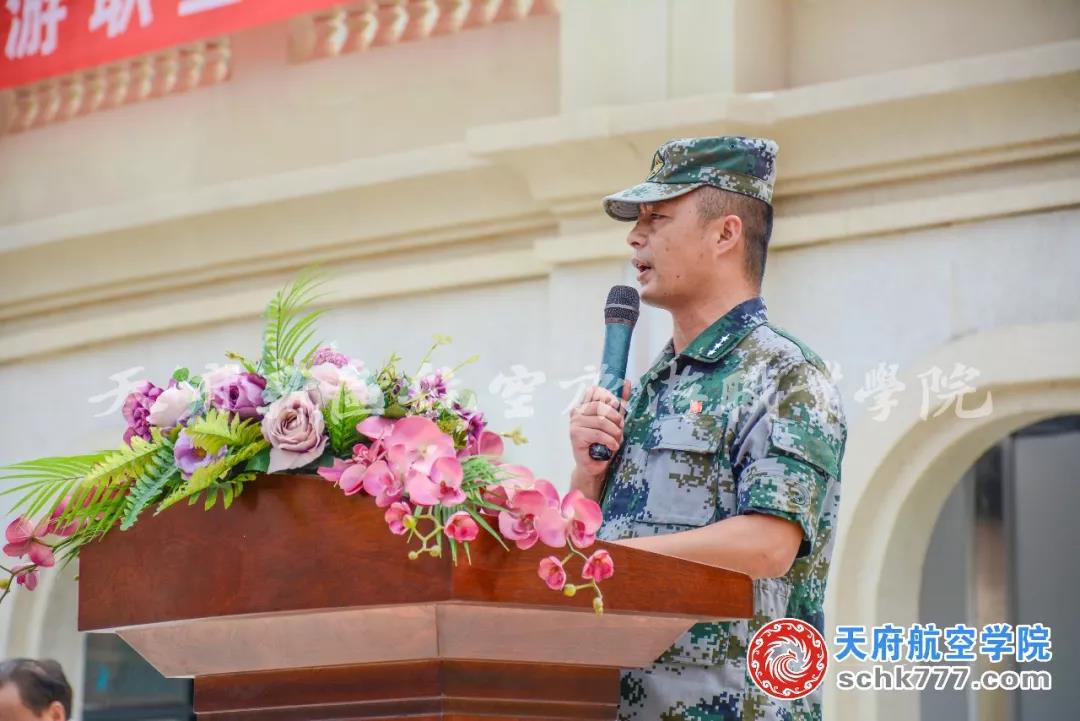 緊接著,安全保衛(wèi)處(武裝部)副處長、軍訓(xùn)總指揮曾毅宣布成立天府新區(qū)航空旅游職業(yè)學院軍訓(xùn)營建制,2018級新生代表呂玉林同學表達了對學院的感謝及對未來學習生活的期望,軍訓(xùn)總教官王美念帶領(lǐng)全體新生進行宣誓儀式。
