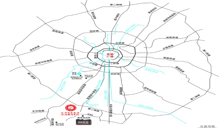 學(xué)校位于四川省天府新區(qū)劍南大道南延線航空大道中段168號,距離國家4A級旅游景區(qū)--黃龍溪古鎮(zhèn)3公里,到雙流國際機(jī)場19公里,交通十分便捷。