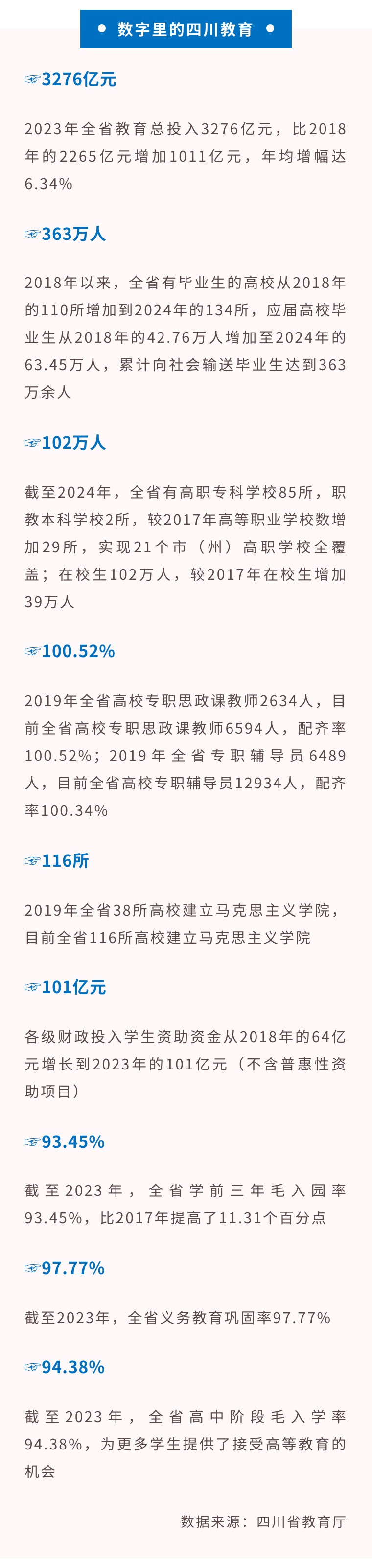 群眾急難愁盼在哪里,教育改革的發(fā)力點(diǎn)就在哪里。近年來,四川在推進(jìn)教育機(jī)會(huì)公平、資源配置公平、制度政策公平等方面持續(xù)發(fā)力,不斷促進(jìn)教育發(fā)展成果更多惠及人民。