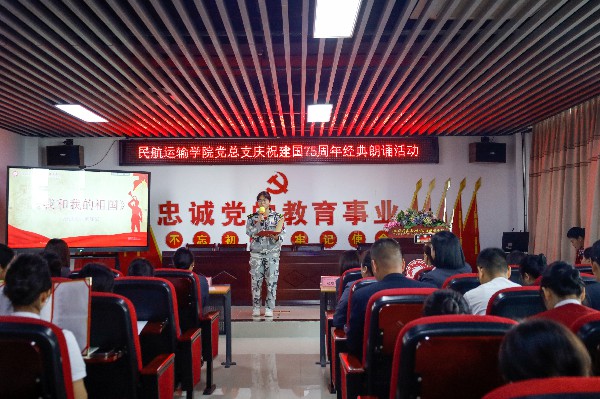 10月17日下午,民航運(yùn)輸學(xué)院黨總支在鳳凰樓404室隆重舉辦了“傳承紅色基因、學(xué)思踐悟中國(guó)共產(chǎn)黨人精神譜系——慶祝建國(guó)75周年經(jīng)典朗誦活動(dòng)”。此次活動(dòng)旨在通過(guò)朗誦經(jīng)典篇目,弘揚(yáng)紅色文化,傳承中國(guó)共產(chǎn)黨人的精神譜系,同時(shí)慶祝中華人民共和國(guó)成立75周年。