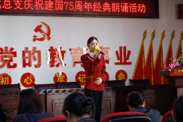 決賽現(xiàn)場(chǎng),選手們用真摯的情感、激昂的語(yǔ)調(diào),深情地朗誦了一篇篇膾炙人口的紅色經(jīng)典,生動(dòng)詮釋了紅色文化的深刻內(nèi)涵,表達(dá)了對(duì)革命先輩的崇敬之情和對(duì)祖國(guó)的熱愛(ài)之情,教師代表也友情參與活動(dòng),使得整個(gè)活動(dòng)形式更加豐富多彩。