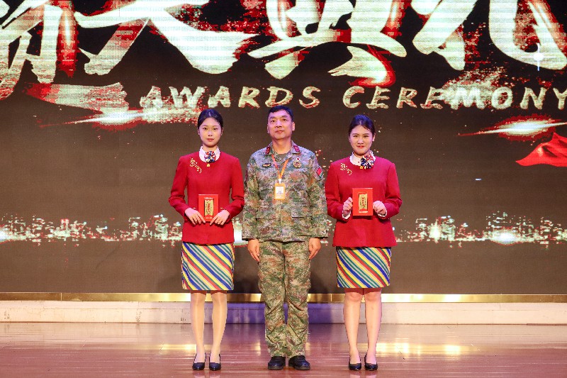 比賽結(jié)束后,學(xué)生處副處長(zhǎng)許祎燁、中職校副校長(zhǎng)鄧竹青等領(lǐng)導(dǎo)為獲獎(jiǎng)團(tuán)隊(duì)頒獎(jiǎng),并合影留念。