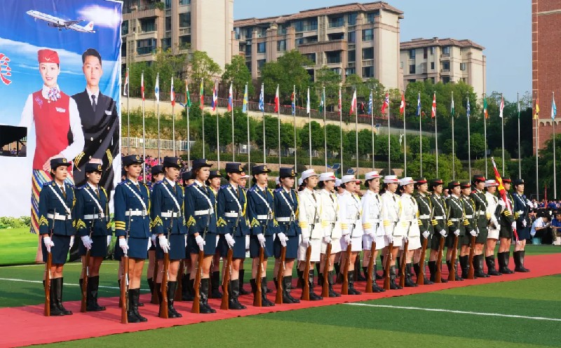 隨后的軍體素質展示開始,天府新區(qū)航空旅游職業(yè)學院院長劉陽進行隊列檢閱。金色的陽光下,學子們裝容嚴整、精神抖擻地列陣主席臺前,以昂揚的精神風貌展現著天航學子的青春風采?!巴瑢W們好!”“院長好!”,同學們辛苦了!”“為人民服務!”嘹亮的口號響切云端。