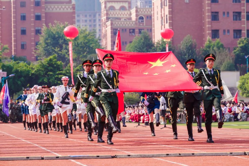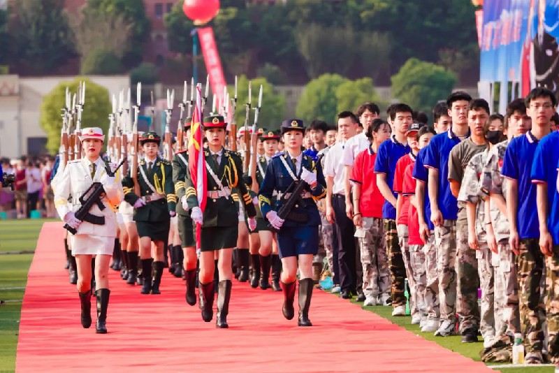 學生們以標準的分列式和整齊的步伐,展現了嚴格訓練下的優(yōu)秀紀律和頑強意志,贏得了全場熱烈掌聲。
