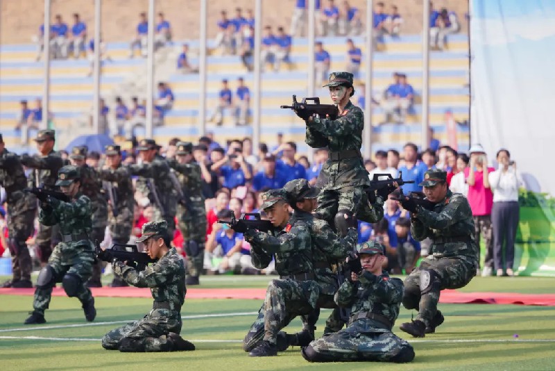 教官們整齊劃一地步入舞臺,他們眼神堅毅、動作干脆利落,仿佛每一個動作都充滿了力量與紀律的沉淀。隨著口令的下達,他們快速變換陣型,展示著各種高難度的軍體技能——擒拿格斗、翻越障礙、戰(zhàn)術演練,干凈利落的動作展現出他們頑強的體魄與過硬的軍事素質。