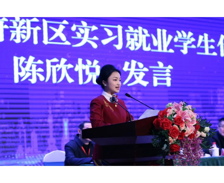 我校實(shí)習(xí)就業(yè)學(xué)生代表陳欣悅則講述了自己在學(xué)校的學(xué)習(xí)經(jīng)歷,以及對(duì)即將開始的新區(qū)實(shí)習(xí)生活充滿著美好向往與期待。
