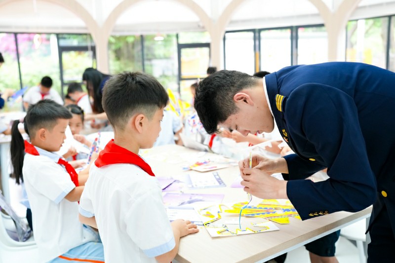 “哥哥姐姐,怎樣才能成為飛行員?”“黨的政策和民航發(fā)展有什么關(guān)系?” 在問(wèn)答與討論環(huán)節(jié),黨員教師們與學(xué)生們親切互動(dòng),不僅解答民航知識(shí)疑惑,更巧妙融入黨的方針政策教育,引導(dǎo)孩子們樹(shù)立“科技報(bào)國(guó)”“嚴(yán)謹(jǐn)負(fù)責(zé)”的價(jià)值觀。現(xiàn)場(chǎng)氛圍熱烈,紅色基因與科學(xué)精神在對(duì)話(huà)中悄然傳遞。