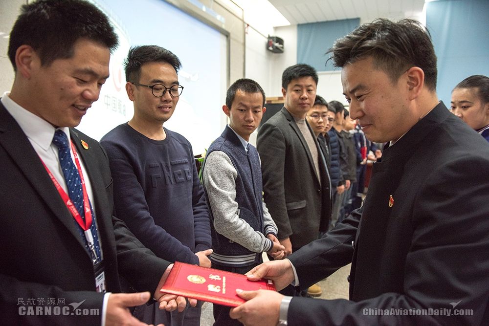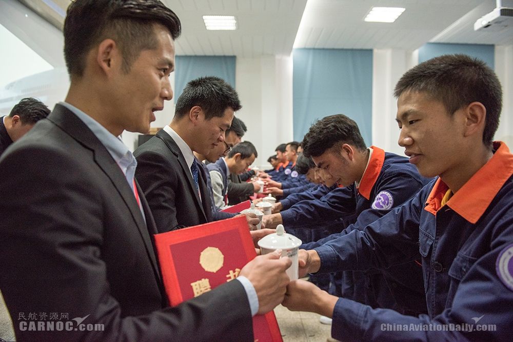 圖:學(xué)院向機(jī)務(wù)師傅頒發(fā)聘書