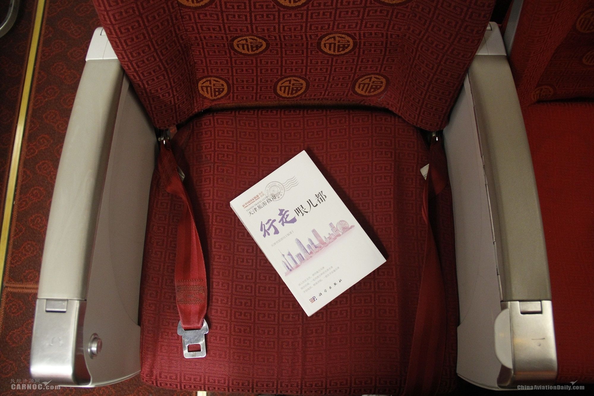 客艙中,每一位旅客座位上都擺放有一本天津旅游指南《行走哏兒都》,作為禮品贈送給首航航班旅客??团撏獯汉锨?,但是旅客在元宵節(jié)的客艙內(nèi)感受到賓至如歸的溫暖。
