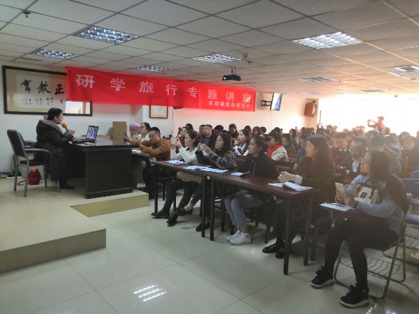 3月11日下午,高職部旅游管理系10余名同學在專業(yè)教師劉冬梅和曾卓老師的帶領下,參加了由成都旅游導游協(xié)會主辦,四川省旅游管理專業(yè)優(yōu)秀教師葉婭麗教授主講的“成都市研學旅行專題講座”。