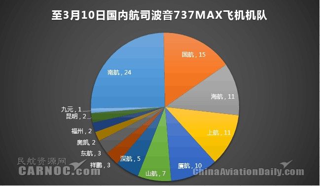 據(jù)民航資源網(wǎng)數(shù)據(jù)顯示,中國(guó)國(guó)內(nèi)共有13家航司運(yùn)營(yíng)著96架737 MAX飛機(jī)。按照民航局的要求,截至11日下午18時(shí),國(guó)內(nèi)運(yùn)輸航空公司均已暫停波音737MAX飛機(jī)商業(yè)運(yùn)行。