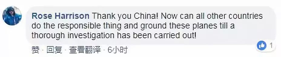 網(wǎng)友評(píng)論:感謝你中國(guó),做了這件負(fù)責(zé)任的事!現(xiàn)在別的國(guó)家終于有了榜樣可以停飛這些飛機(jī),直到調(diào)查結(jié)果水落石出。