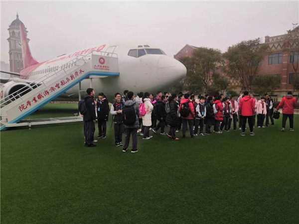“其實(shí),這不僅是一次研學(xué)游,還是一堂生動的國防教育課。”實(shí)訓(xùn)中心王建成主任說道。天府新區(qū)航空旅游職業(yè)學(xué)院自2018年起開展特色民航科研體驗(yàn)課程,漂亮的校園整體風(fēng)貌博采歐美名?!稹⑴=?、哥倫比亞大學(xué)之精華,風(fēng)景優(yōu)美,是一所景觀學(xué)校、園林學(xué)校、影視拍攝基地。學(xué)校具有特色鮮明的民航主題,世界一流實(shí)訓(xùn)體驗(yàn)設(shè)備,被授予“中國民航科普教育基地”稱號。這里是學(xué)生進(jìn)行研學(xué)的大課堂,是了解民航迅猛發(fā)展的重要一站,豐富的體驗(yàn)場景屬性決定了研學(xué)課程的開展都能找到相對應(yīng)場景及教學(xué)載體,無論是民航發(fā)展理論還是民航職業(yè)體驗(yàn),是世界民航走向,還是動手實(shí)踐操作,天航都有著豐富的資源,幫助孩子開闊視野、研有所獲,與學(xué)校共同把研學(xué)旅行的教育落到實(shí)處!